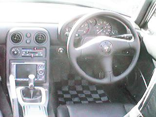 そしてコックピット。ステアリングホイールはモモの革巻です。
