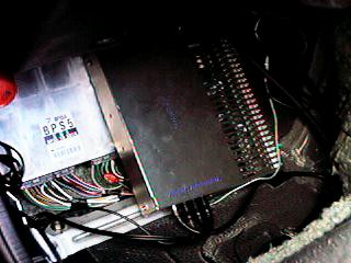 と上のように書いたんですが、VICS のアンテナを TV から取ってたらうまく入らなかったので、本来のアンテナを立てて TV のは戻しました。チューナアンプはこの写真のように助手席の足元にあるので、内装を剥がしてケーブルを引きました(だってオートバックスただでやってくれないって言うんだもの)。